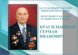 В 1953 г. молодой специалист по распределению приезжает на Красноборский холодильник, что под Смоленском. Наверное, можно сказать, что за 19 лет работы предприятие, по сути, стало родным домом: пройди путь от начальника цеха до директора, уже невозможно жить без оглядки на работу. Но в 1972 г. приказом Министра Минмясомолпрома СССР Г.И.Красильников назначается директором Руднянского молочноконсервного комбината, где работал в этой должности по 1991 год, с 1991 года по 2003 год - генеральным директором ЗАО «Рудняконсервмолоко», затем заместителем генерального директора по общим вопросам. Комбинат под руководством Германа Ивановича Красильникова стал крупнейшим в области, и для многих родственных предприятий являлся производственной базой. По итогам работы комбинат неоднократно был победителем соревнования, благодаря качественной продукции завоевывал переходящие знамена Минмясомолпрома СССР. Много было сделано по решению социальных вопросов: сдано в эксплуатацию более 300 квартир, детский сад-комбинат с начальной школой, Дом культуры со спортивным комплексом, поликлиника, подсобное хозяйство, зона отдыха.
