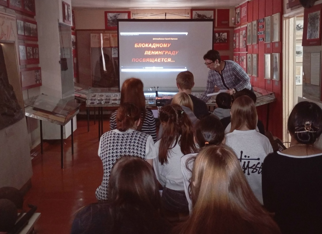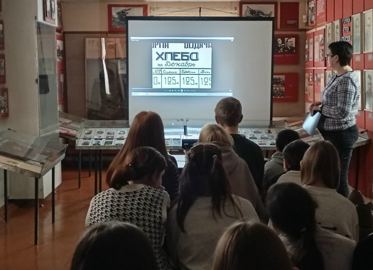 Ребята узнали о тяжёлых испытаниях, выпавших на долю жителей осаждённого Ленинграда: о голоде и холоде, о детях и женщинах, которые работали наравне с мужчинами на заводах, о защите и обороне города, а также о строительстве спасительной "Дороги жизни" через Ладожское озеро.