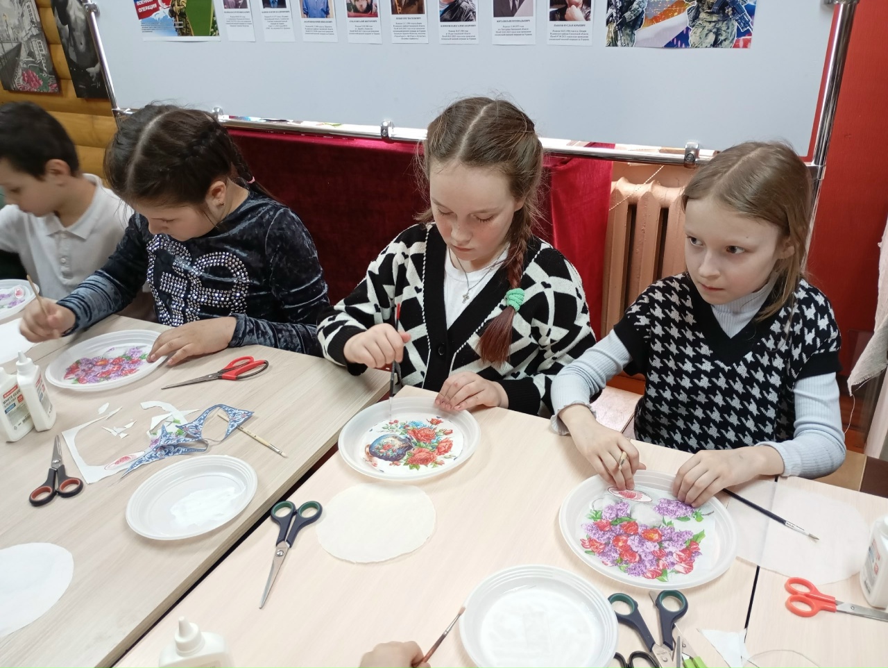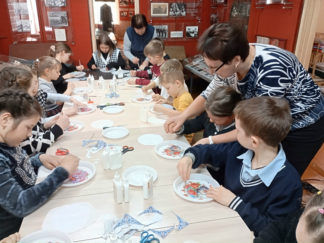 Под руководством сотрудников музея юные мастера погрузились в чарующий мир декупажа, где обыденность пластиковых тарелок преобразилась в настоящее искусство. С каждым прикосновением кисти, с каждой аккуратно вырезанной деталью, в их творения вплетались не только усердие и терпение, но и искромётная фантазия, щедро сдобренная любовью к самому дорогому человеку. Сияя от гордости и восторга, каждый участник унёс с собой не только уникальное произведение, но и бесценный багаж ярких эмоций и безупречного настроения!