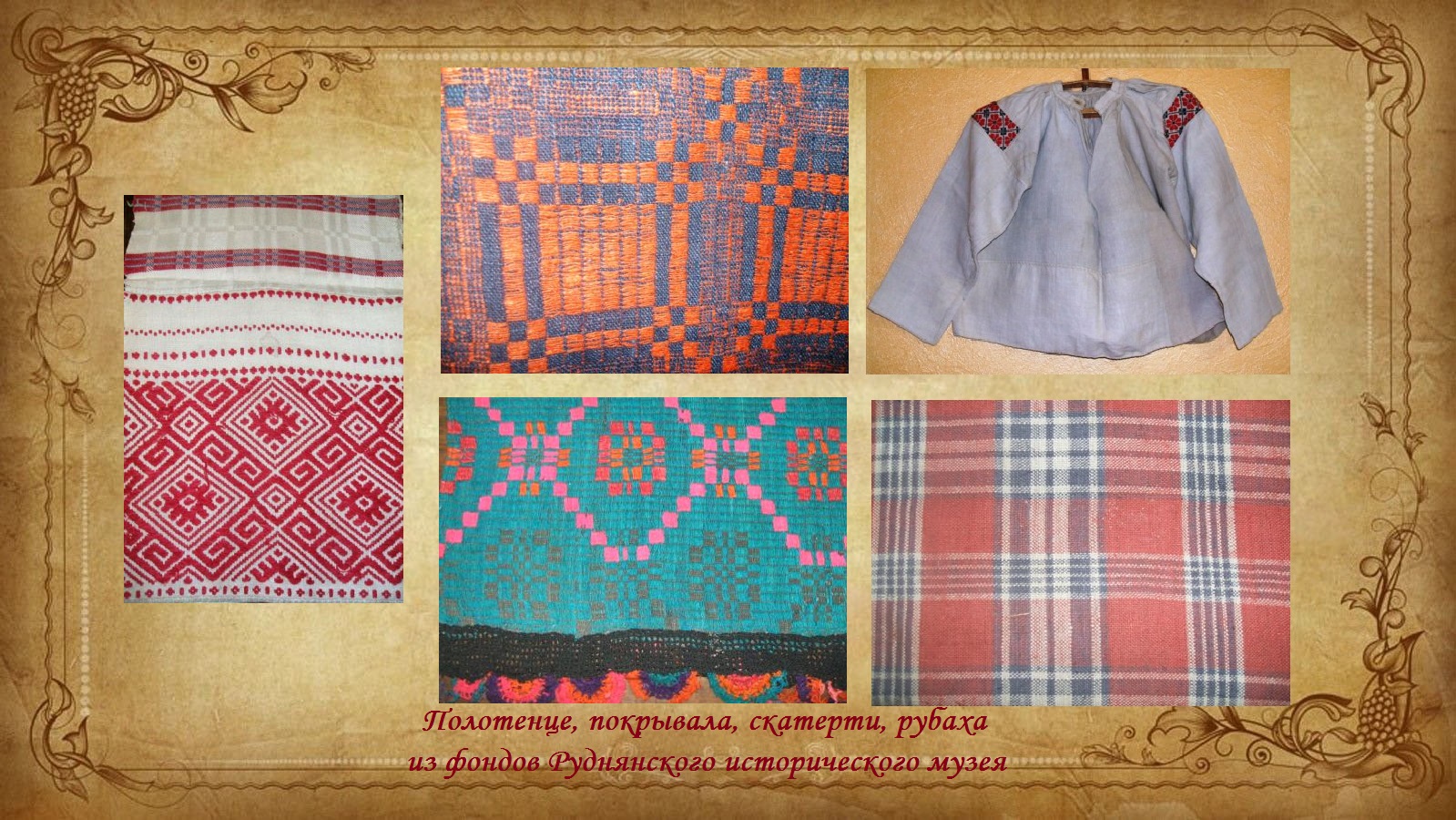 Изготовление ткани начинали в светлое время года, в конце февраля, и заканчивали к началу огородных работ. Ткацкий стан – кросна - снимали с чердака, где он хранился в разобранном виде, собирали и ставили около окна. Если в семье было несколько взрослых женщин, то устанавливали два-три стана, чтобы они могли на них работать, не мешая друг другу. Женщины изготавливали льняные, конопляные, шерстяные, хлопчатобумажные ткани, из которых потом шили одежду, полотенца, скатерти и другие нужные семье вещи. Они ткали как простые ткани, так и довольно сложные. Особенно ценилось умение выткать бранные ткани с красивым узором. Из них шили скатерти для праздничного стола, женские передники и делали вставки на рукава рубах.