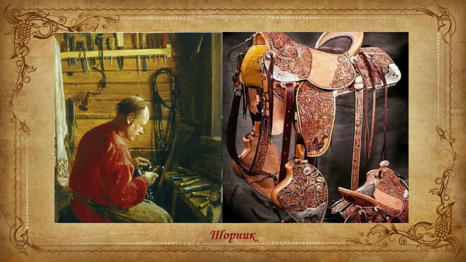 Это ремесло было кропотливым и трудоемким и требовало высокого мастерства от шорника, работавшего вручную самыми простыми инструментами. Появилось оно ещё в Древней Руси и считалось очень почётным. Ведь шорники должны были уметь работать с кожей, иметь хороших глазомер, уметь шить, обладать навыками кузнеца да к тому же обладать недюжинной силой.